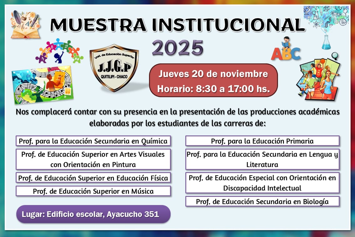 El JUEVES 20 de noviembre se llevará a cabo en nuestras instalaciones la MUESTRA INSTITUCIONAL 2025 DEL I.E.S. PISARELLO.